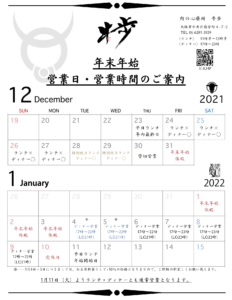 年末年始の営業日時となりますので、宜しくお願いします。